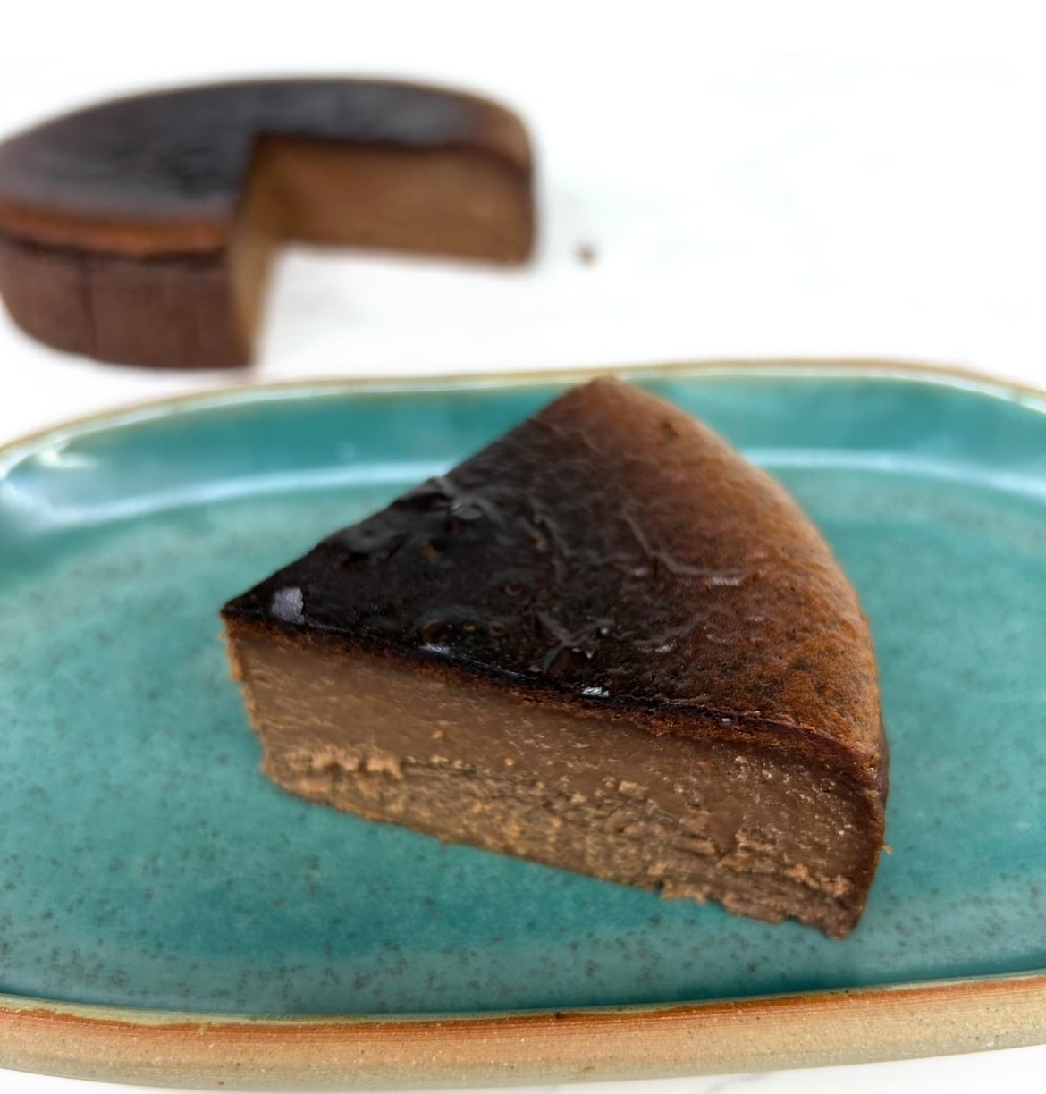 濃厚でリッチな味わいが楽しめる「バスクチーズケーキ•ショコラ」。厳選されたフランス産のキリクリームチーズとピュア生クリームを贅沢に使用。